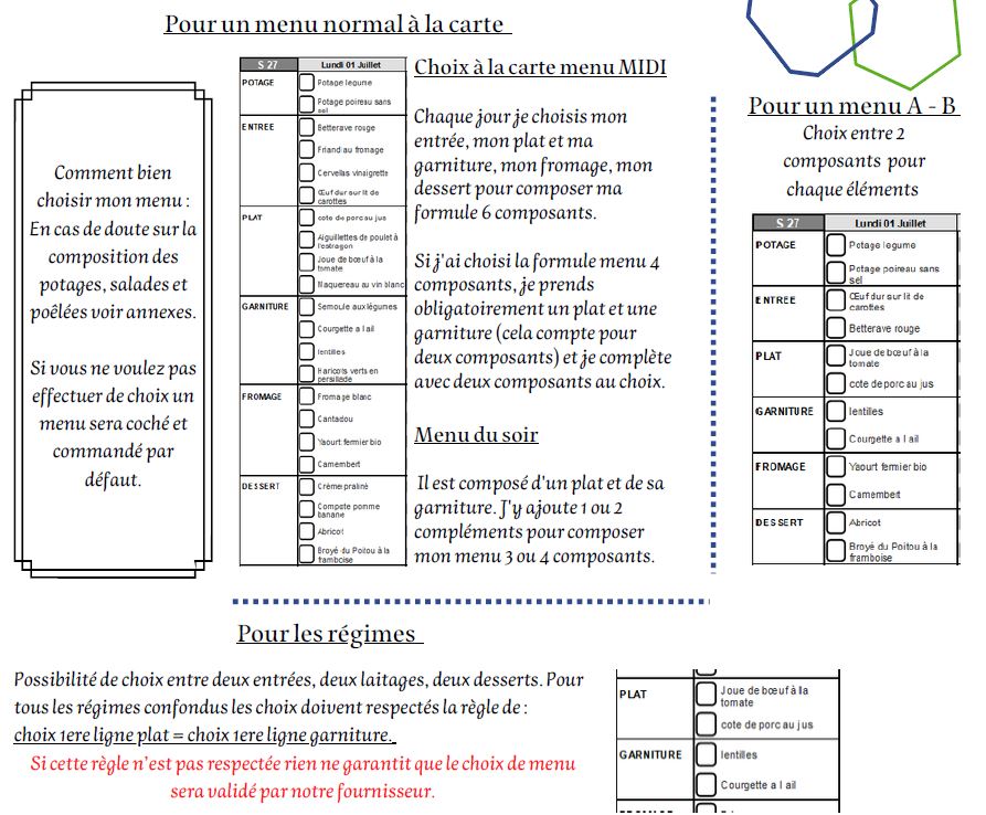 Possibilité de choix entre deux menus chaque jour pour les menus :