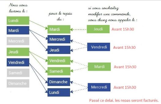 En cas d’absence non justifiée, ou d’impossibilité matérielle de vous remettre le repas, celui-ci vous sera facturé même s’il n’a pas été livré